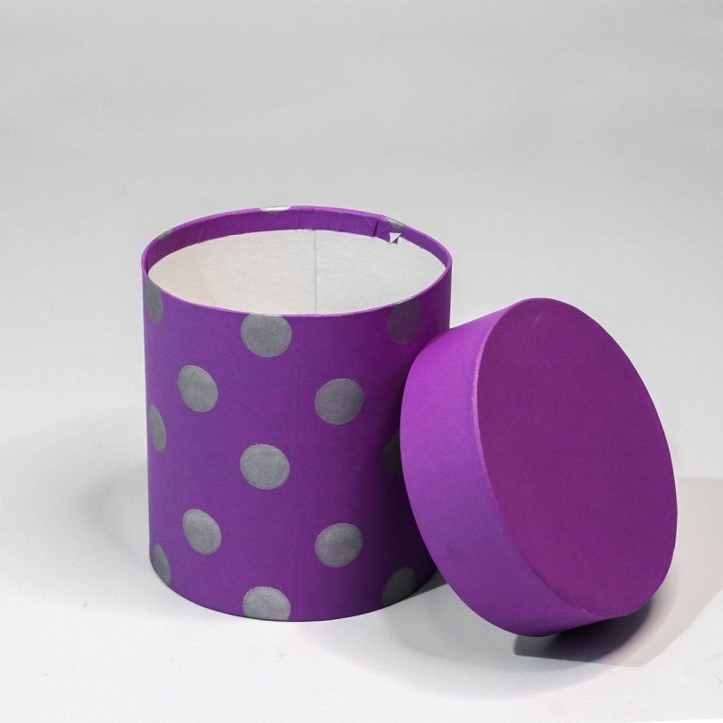 Коробка круглая 13*13 "Горох крупный "фуксия