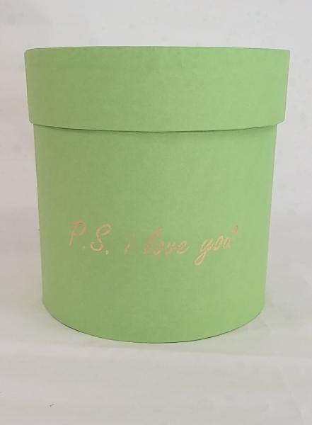 Коробка круглая 16*16 с тиснением "P.s. i love you" салатовый!!!