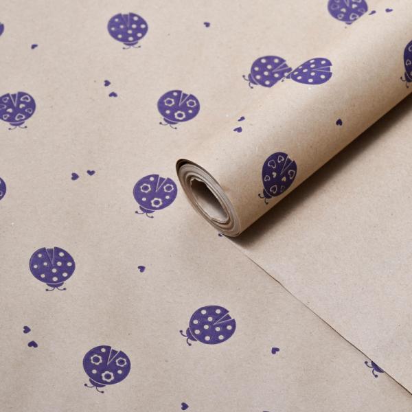 Крафт бумага "Божья коровка" фиолетовый цв. на коричневом 70 см*8,5 ярд ± 5%