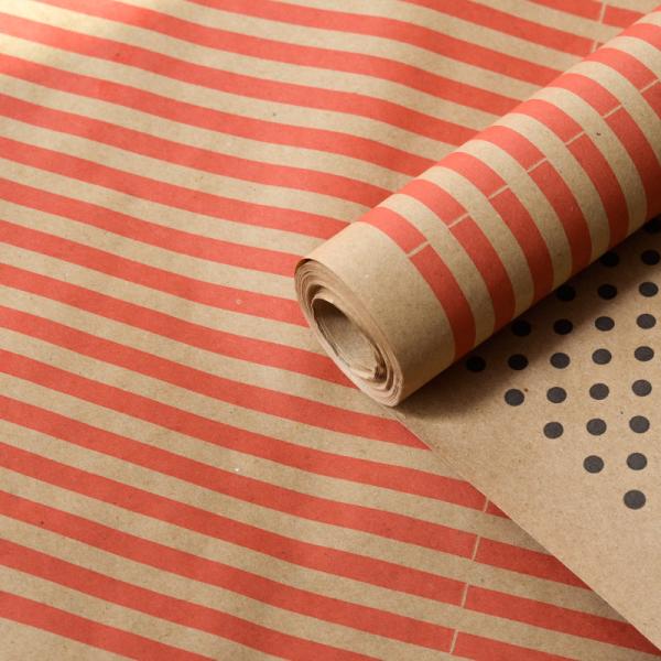 Крафт бумага двухст. "Полоска" красный/"Крафтовый горох" черный на коричневом 70 см* 8,5 м ± 5%