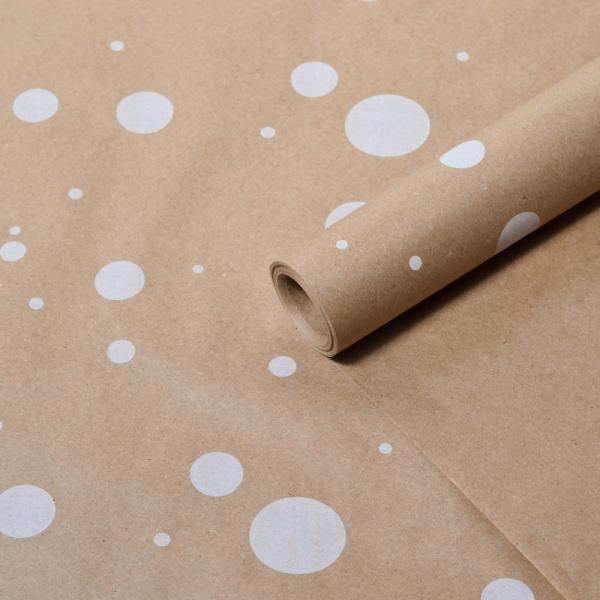 Крафт бумага "Горошина крупная" белый цв. на коричневом фоне 70 см*8,5 ярд ± 5%