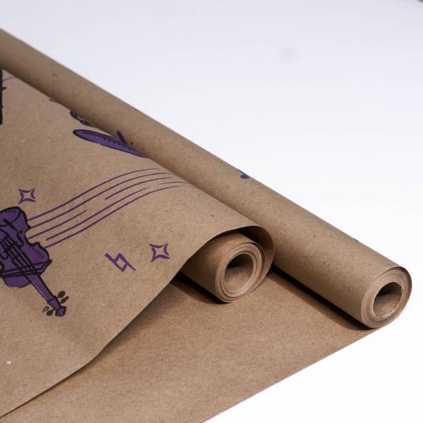 Крафт бумага "Музыка"цв. черный-сиреневый на коричневом фоне 720мм/60гр/60мкр/8,5м± 5%