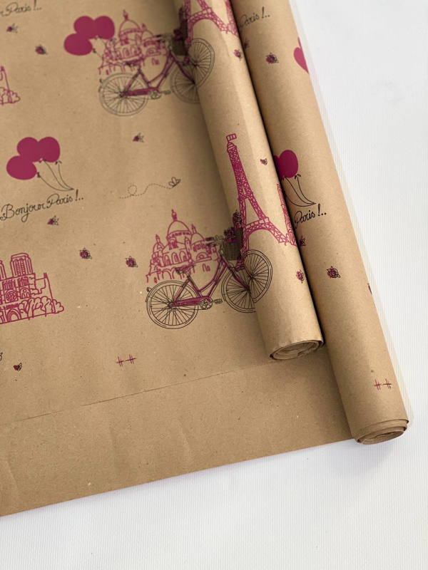 Крафт бумага "Парижская прогулка" цв.черно-фуксия на коричневом фоне 720мм/60гр/60мкр/8,5м± 5%