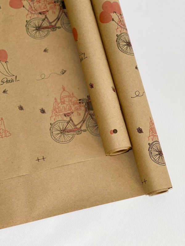 Крафт бумага "Парижская прогулка" цв.черно-красный на коричневом фоне 720мм/60гр/60мкр/8,5м± 5%