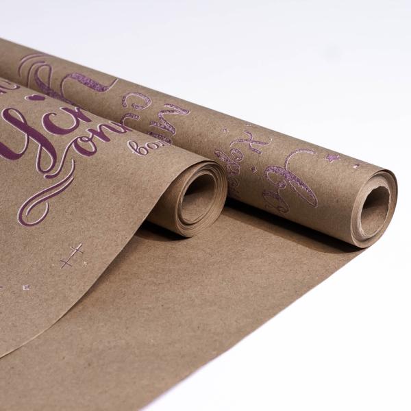 Крафт бумага "Поздравления градиент" цв.бело-фуксия на коричневом фоне 720мм/60гр/60мкр/8,5м± 5%