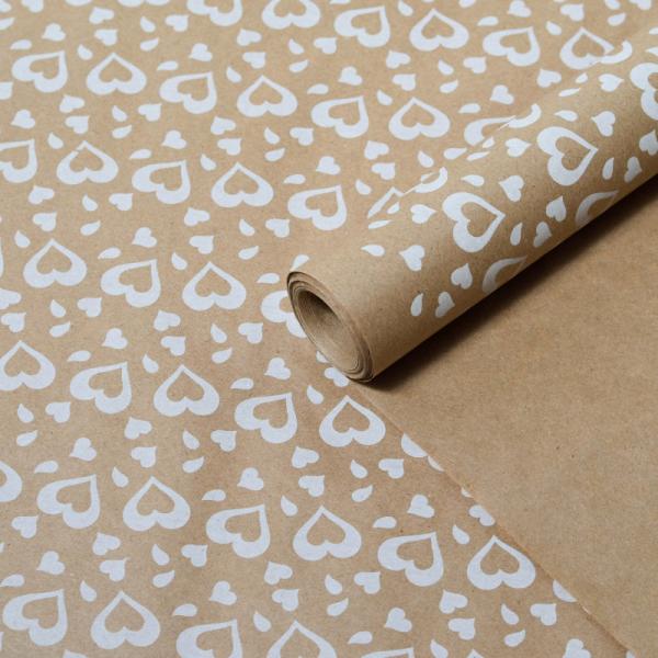 Крафт бумага "Валентин" белый цв. на коричневом фоне 70 см*8,5 ярд ± 5%