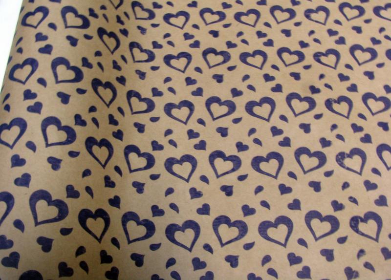 Крафт бумага "Валентин" фиолетовый цв. на коричневом фоне 70 см*8,5 ярд ± 5%