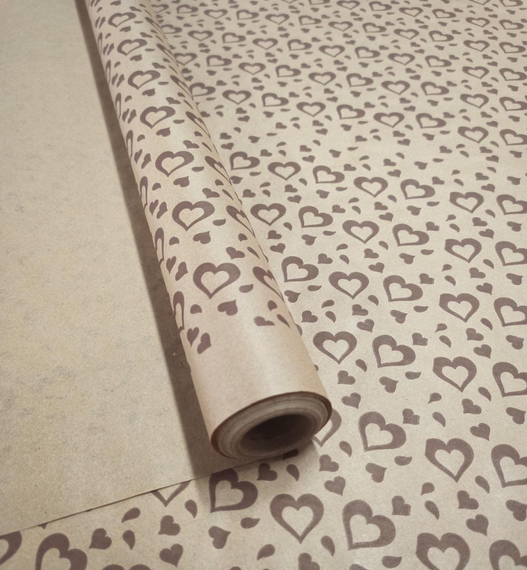 Крафт бумага "Валентин" коричневый цв. на коричневом фоне 70 см*8,5 ярд ± 5%