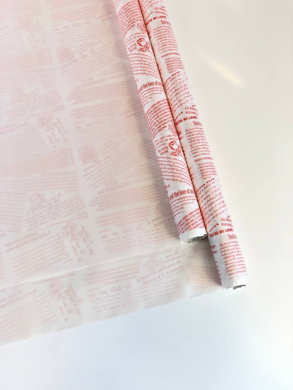 Матовая пленка двухсторонняя на втулке 50мкр Перламутр белый/Послание красный 60 см*10 ярд ± 5%