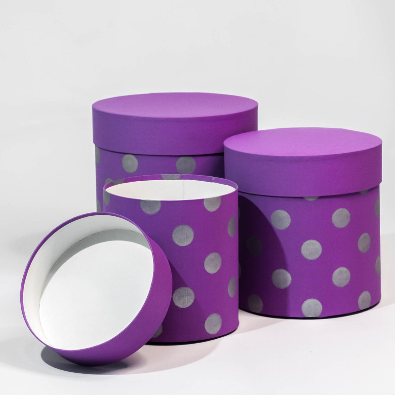 Набор коробок круглый из-3х"Горох крупный" фуксия (13*13/16*16/18*18)