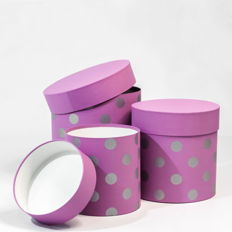 Набор коробок круглый из-3х"Горох крупный" нежная малина (13*13/16*16/18*18)