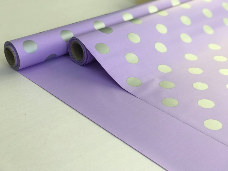 Пленка матовая 2-х сторонняя с рисунком светлый фиоллет-горох серебро 580мм/12м±5% 50мкр