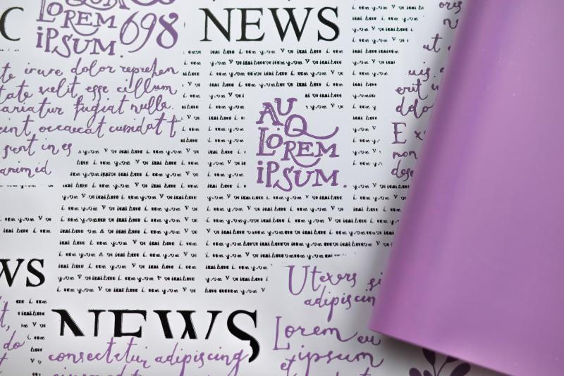Пленка матовая двухст. с рисунком "Газета" цв.виолет 58см*12м±5% 50мкр
