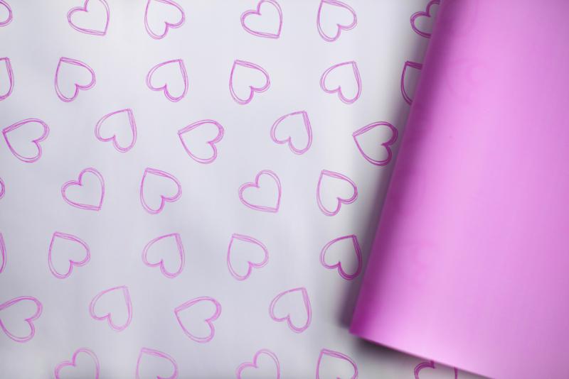 Пленка матовая двухст.с рисунком"Сердце"цв.пурпурное утро 58см*12м±5% 50мкр