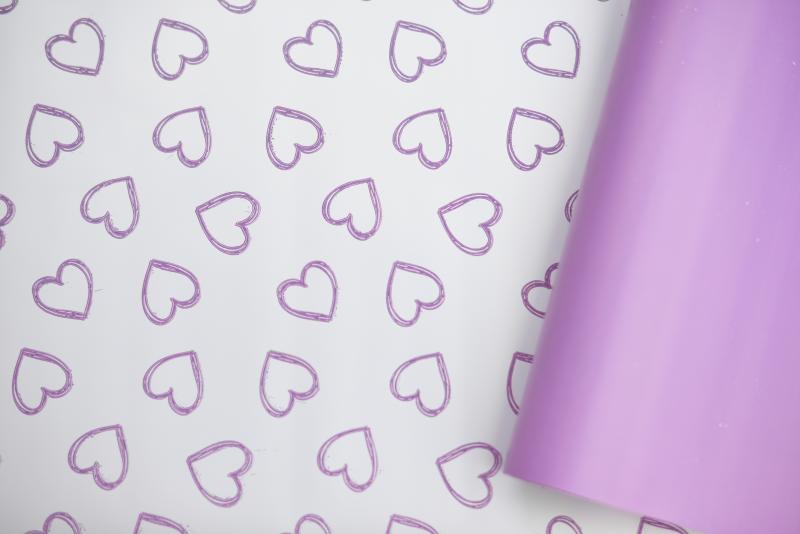 Пленка матовая двухст.с рисунком"Сердце"цв.виолет 58см*12м±5% 50мкр