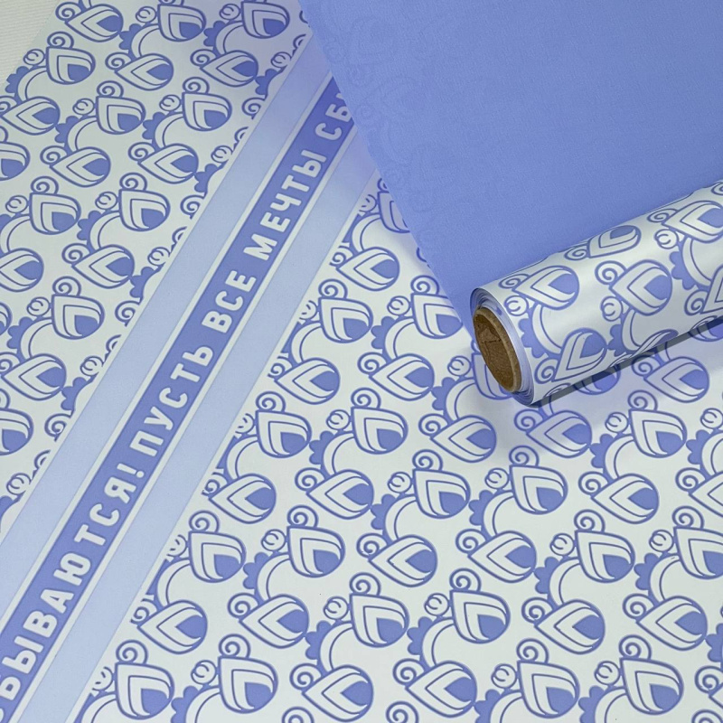 Пленка матовая двухсторонняя "Мечты сбываются"св.голубая 58см/10м±5%/50мкр