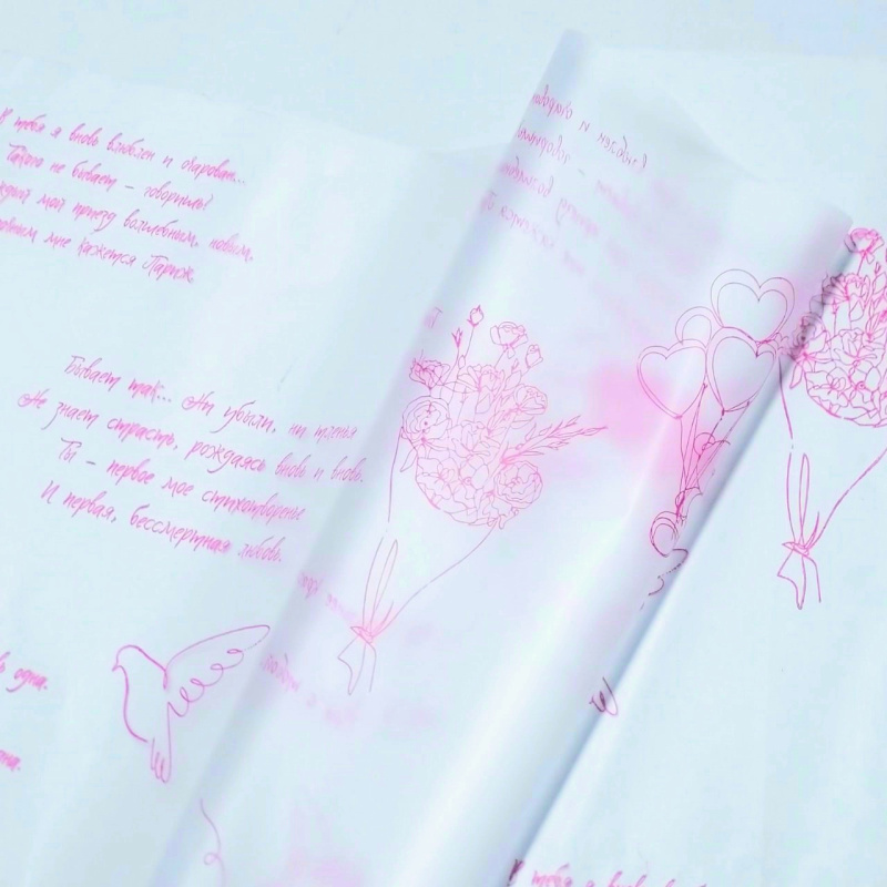 Пленка матовая с рисунком 50 мкр "Признание" розовая 60см*10 ярд ± 5%