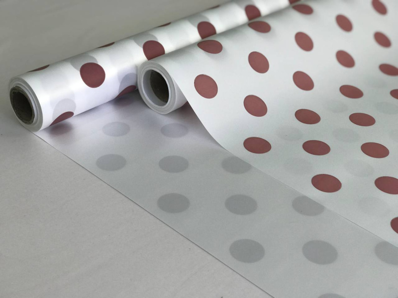 Пленка матовая с рисунком белая-горох крупный танго 580мм/12м±5% 50мкр