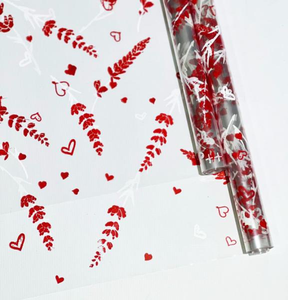 Пленка прозрачная двухцветная с рисунком Лаванда бело-красная 70см*10ярд ± 5%