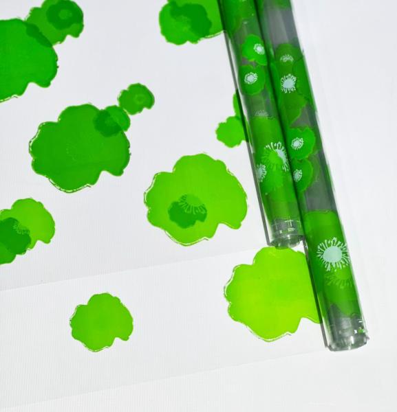 Пленка прозрачная двухцветная с рисунком Маки бело-салатовая 70см*10ярд ± 5%