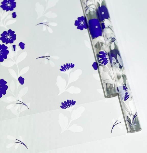Пленка прозрачная двухцветная с рисунком Полевые цветы бело- сиреневая 70см*10ярд ± 5%