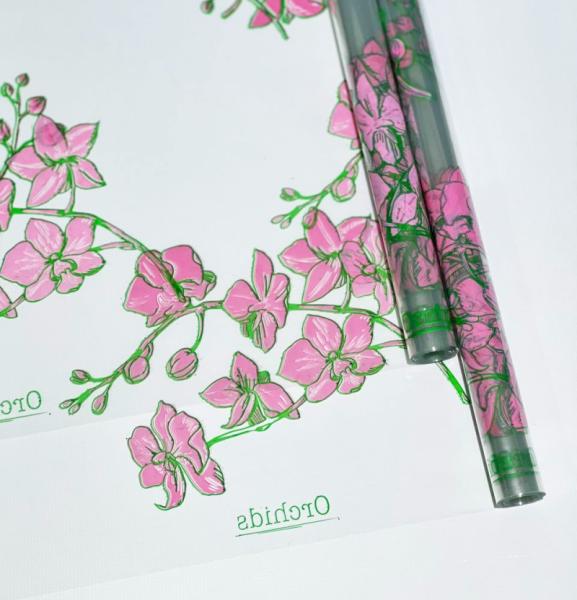 Пленка прозрачная с рисунком Орхидея розовая 70см*10ярд ± 5%