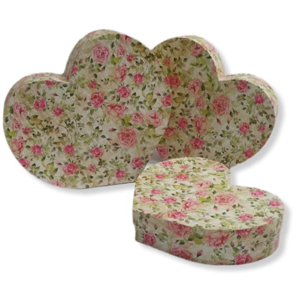 Набор коробок картон 3в1 сердце 25*20*5/29*24*7см цветы - шиповник 20А2-МФ-043