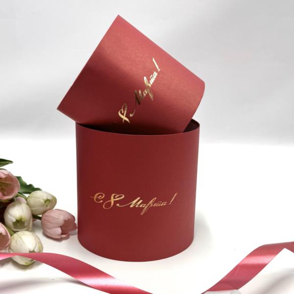 Коробки круглые набор без крышек из 2х (13*13/16*16) малина с тиснением С 8 Марта