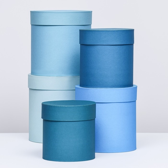 Коробки круглые набор из 5-ти (13*13/15*15/16*16/18/18 /20*20) "Голубой"