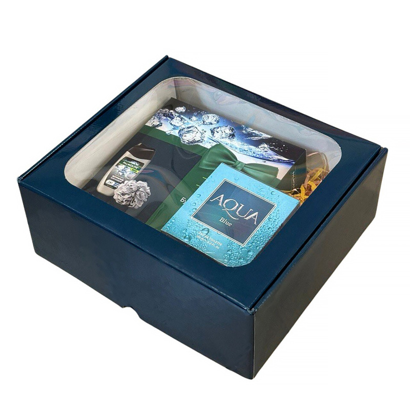 Коробка с ПЭТ-окном цв. темно-синий, 260мм/300мм/120мм