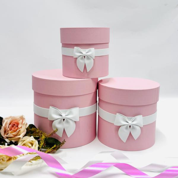 Коробки круглые Набор из 3х (13*13/16*16/18*18) с бантиком Нежно-розовый
