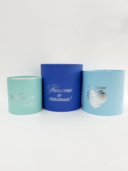 Коробки круглые без крышек Набор из 3х (13*13/16*16/18*18) с тиснением "Пожелания" Аквамарин