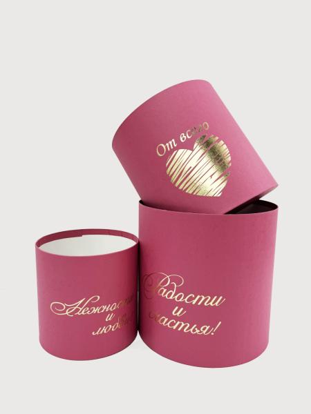 Коробки круглые без крышек Набор из 3х (13*13/16*16/18*18) с тиснением "Пожелания" малиновый