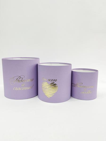 Коробки круглые без крышек Набор из 3х (13*13/16*16/18*18) с тиснением "Пожелания"сиреневый