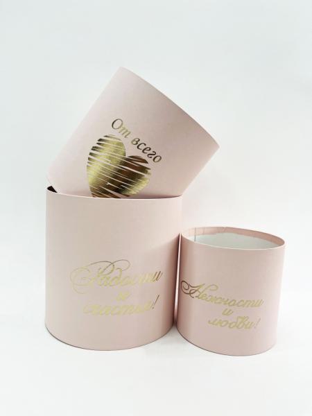 Коробки круглые без крышек Набор из 3х (13*13/16*16/18*18) с тиснением "Пожелания" светло-розовый