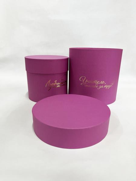 Коробки круглые Набор из 2х (13*13/16*16) с тиснением "Для учителя" фуксия