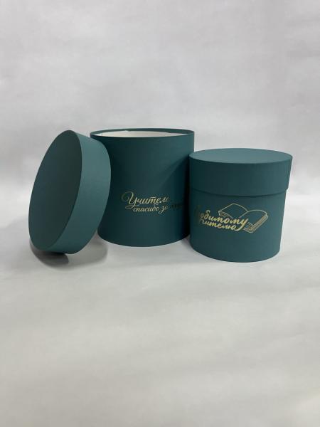 Коробки круглые Набор из 2х (13*13/16*16) с тиснением "Для учителя" изумруд