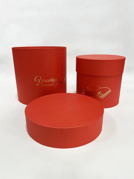 Коробки круглые Набор из 2х (13*13/16*16) с тиснением "Для учителя" красный