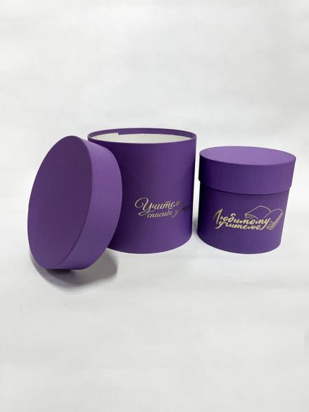 Коробки круглые Набор из 2х (13*13/16*16) с тиснением "Для учителя" сиреневый