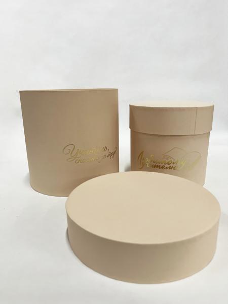 Коробки круглые Набор из 2х (13*13/16*16) с тиснением "Для учителя" ванильный