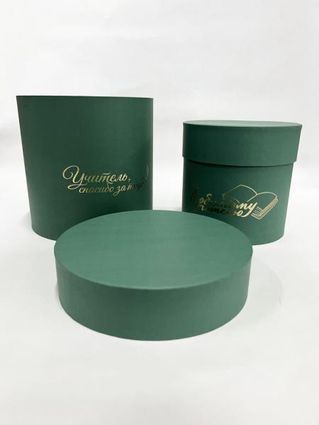 Коробки круглые Набор из 2х (13*13/16*16) с тиснением "Для учителя" зеленый