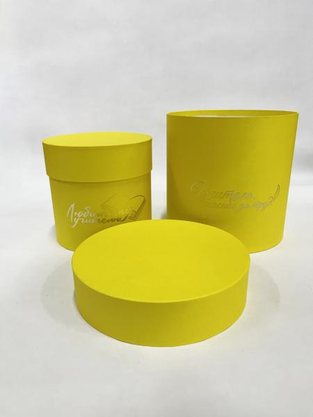 Коробки круглые Набор из 2х (13*13/16*16) с тиснением "Для учителя" желтый