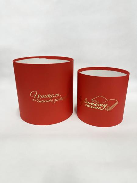 Коробки круглые набор из 2х без крышек (13*13/16*16) .с тиснением "Для учителя" красный