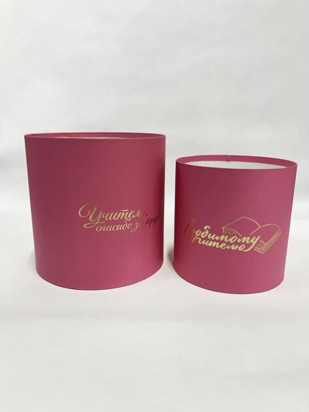 Коробки круглые набор из 2х без крышек (13*13/16*16) .с тиснением "Для учителя" розовый
