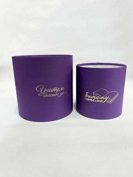 Коробки круглые набор из 2х без крышек (13*13/16*16) .с тиснением "Для учителя" сиреневый