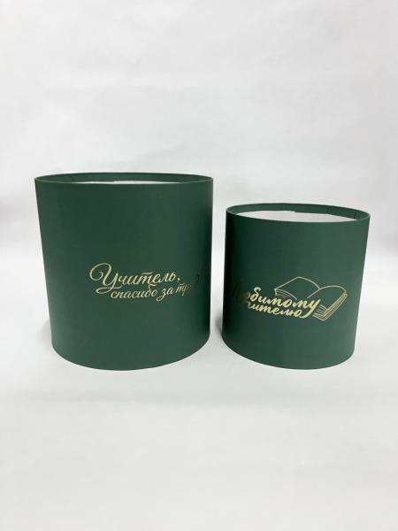 Коробки круглые набор из 2х без крышек (13*13/16*16) .с тиснением "Для учителя" зеленый