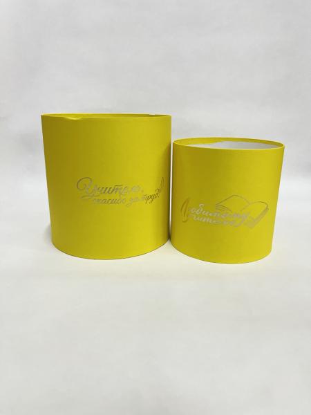 Коробки круглые набор из 2х без крышек (13*13/16*16) .с тиснением "Для учителя" желтый