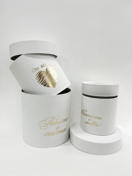 Коробки круглые Набор из 3х (13*13/16*16/18*18) с тиснением "Пожелания" белый