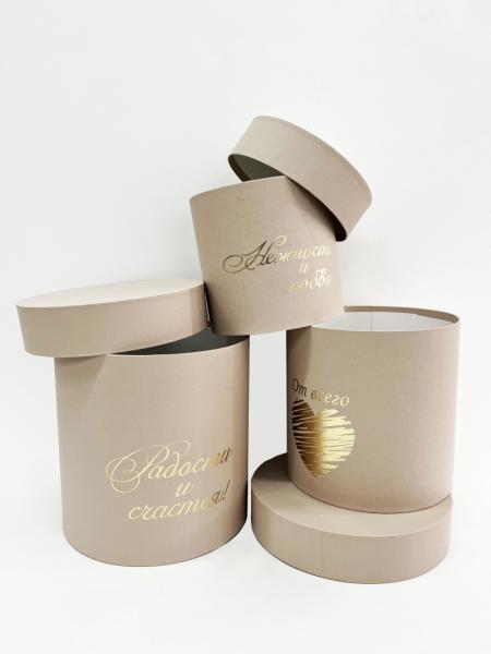 Коробки круглые Набор из 3х (13*13/16*16/18*18) с тиснением "Пожелания" кофе с молоком