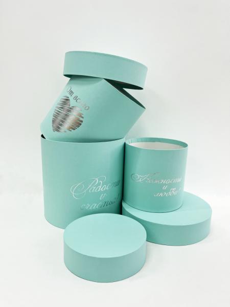 Коробки круглые Набор из 3х (13*13/16*16/18*18) с тиснением "Пожелания" мятный